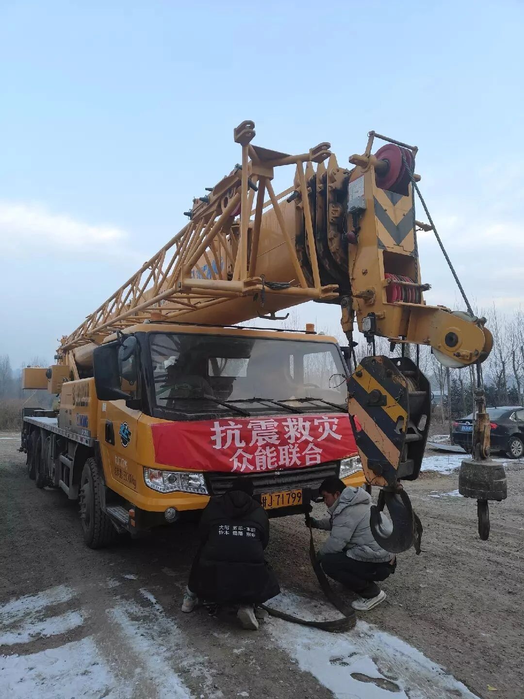 对突发的需求,工程设备紧缺,众能联合全力协调资源,在1.5小时内完成供给匹配,30余辆吊车、随车吊,30余辆货车、挖机、装载机、发电机急速出发300公里驰援震区。随着支援行动的进行,众能联合的支援车辆还在持续进场。